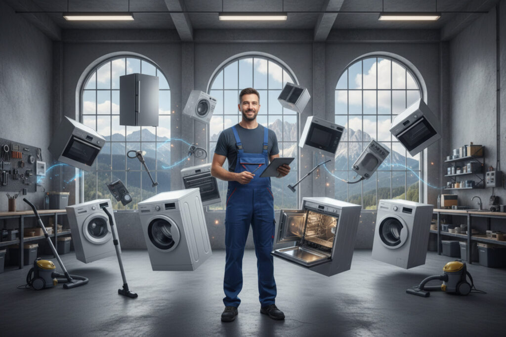 Da oltre quarant’anni ci occupiamo di diagnosi, riparazione e manutenzione di elettrodomestici in tutta la provincia di Bolzano. Interveniamo con tecnici qualificati, ricambi originali e procedure autorizzate dalle principali case produttrici. La nostra priorità è offrire un servizio affidabile, rapido e trasparente, garantito da qualità Impresa di Maestro Artigiano.